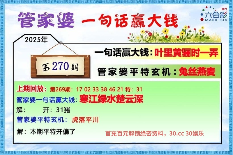 270期:管家婆一句话:【叶里黄骊时一弄】 |